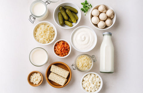 Los alimentos fermentados y los probióticos fortalecen la salud intestinal y potencian la producción de GLP-1 al modular favorablemente la microbiota. Mantener una comunidad bacteriana equilibrada mejora la fermentación de las fibras y aumenta la síntesis de AGCC, reforzando el estímulo sobre las células L.